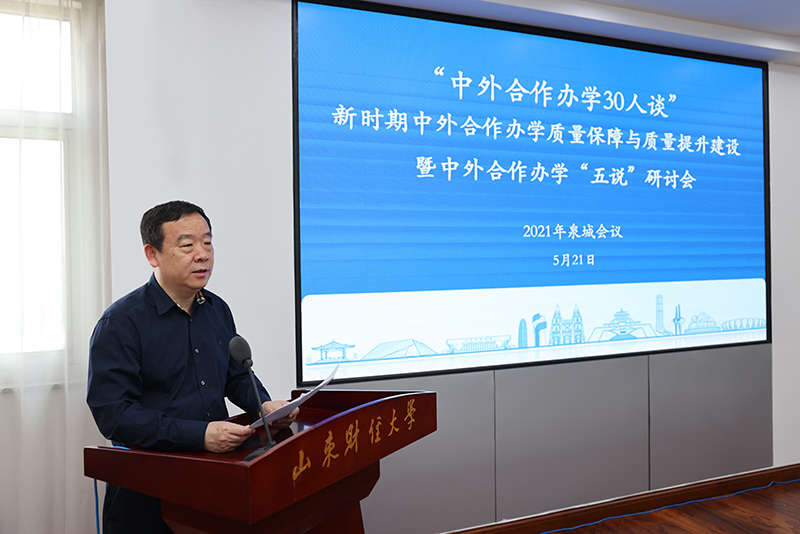 世界百年未有之大变局,对新时代教育对外开放提出了新的挑战。5月21日,“中外合作办学30人谈”2021年泉城会议-中外合作办学质量保障与质量提升建设暨中外合作办学“五说”研讨会在我校燕山校区举办。山东省教育厅副厅长张琳出席开幕式,学校党委书记王邵军出席并致辞。校长赵忠秀主持会议。来自全国各地60余位中外合作办学领域的专家学者、我省双高学校代表、学校相关职能部门和学院负责人等参加了此次研讨会。